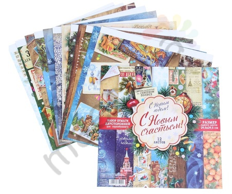 OUT Набор бумаги для скрапбукинга С Новым счастьем, 160 гр/м2, 12 листов 30x30 см